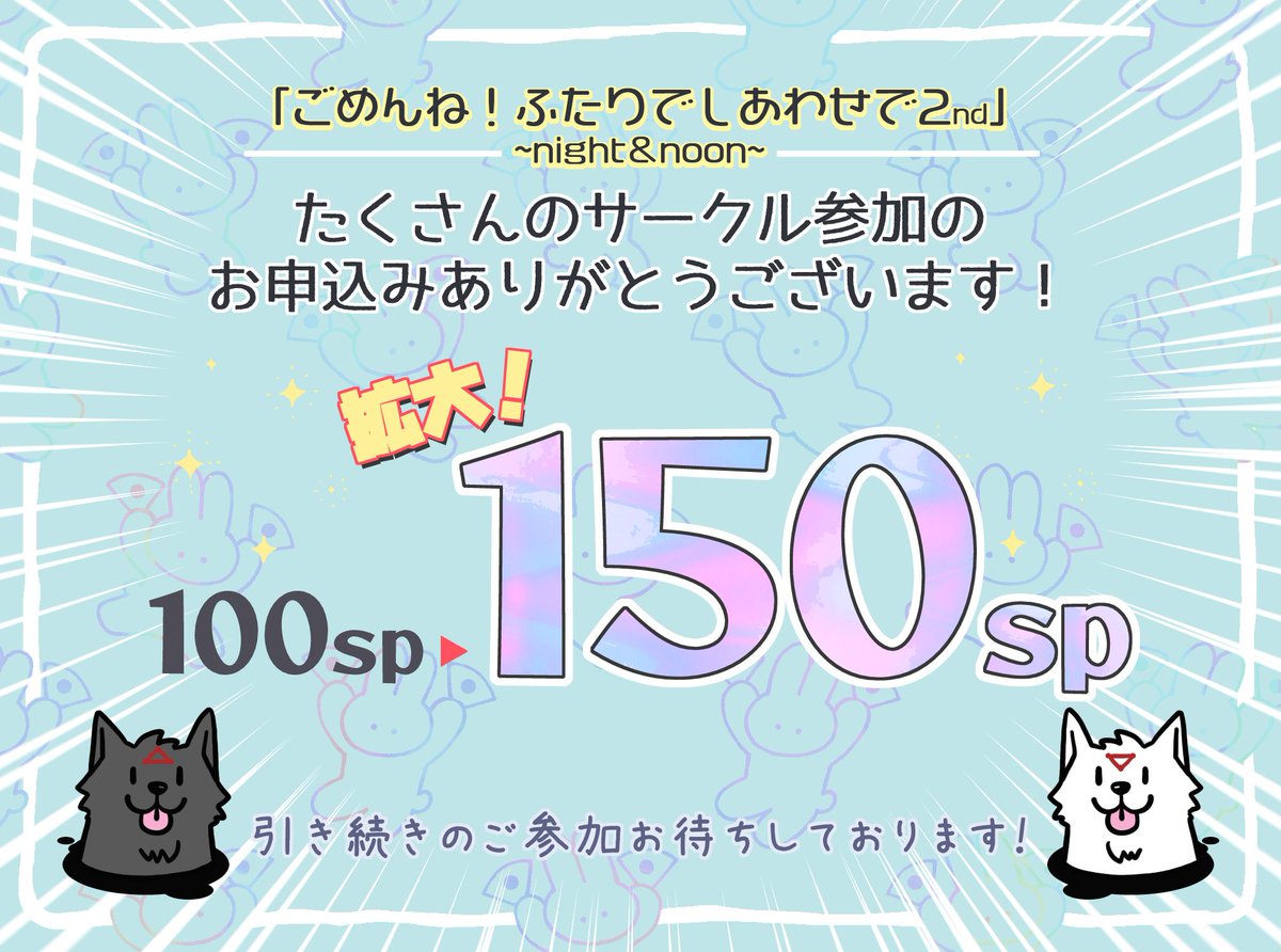 早期満了に伴い、night・noon共に100sp→150spにスペースを拡大いたしました🥳🎉