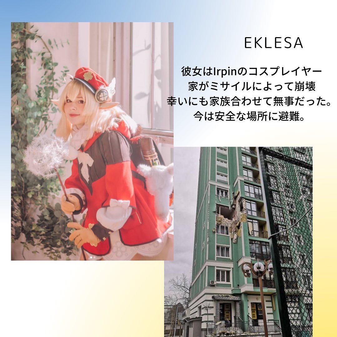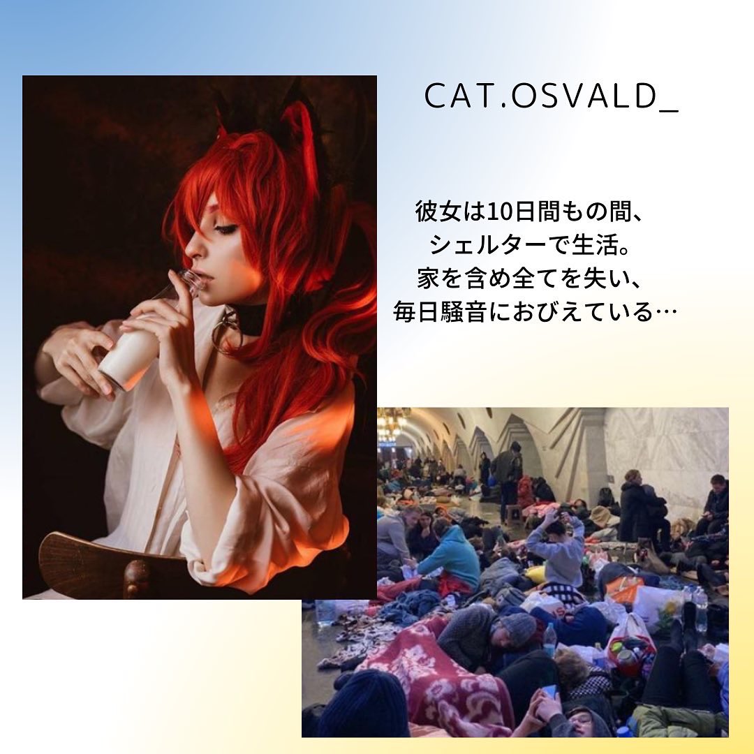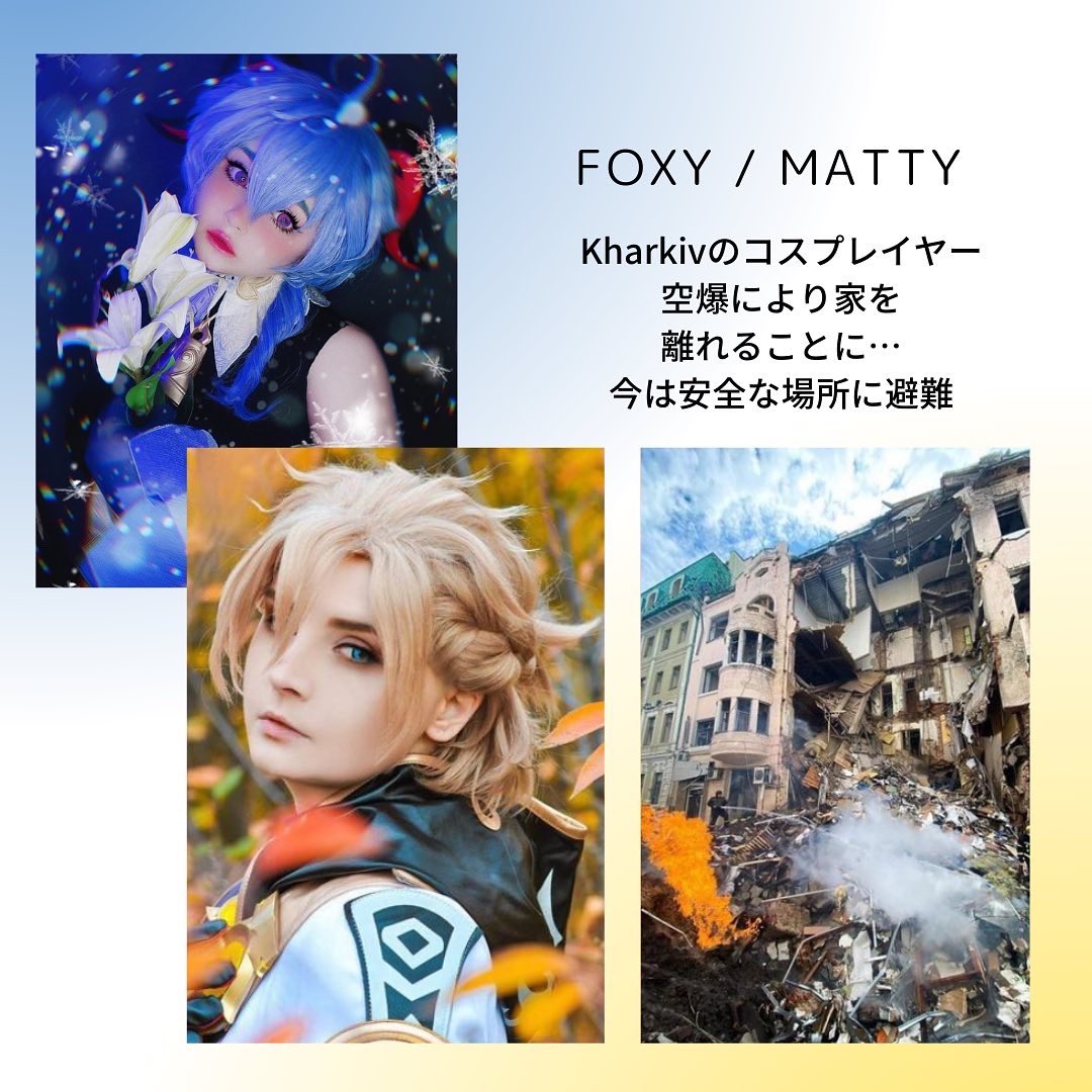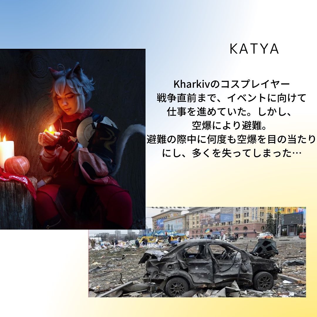 この戦争で多くのコスプレイヤーたちが家や家族を失い、今も悲しみに耐えながら戦っています。ウクライナに平和を。