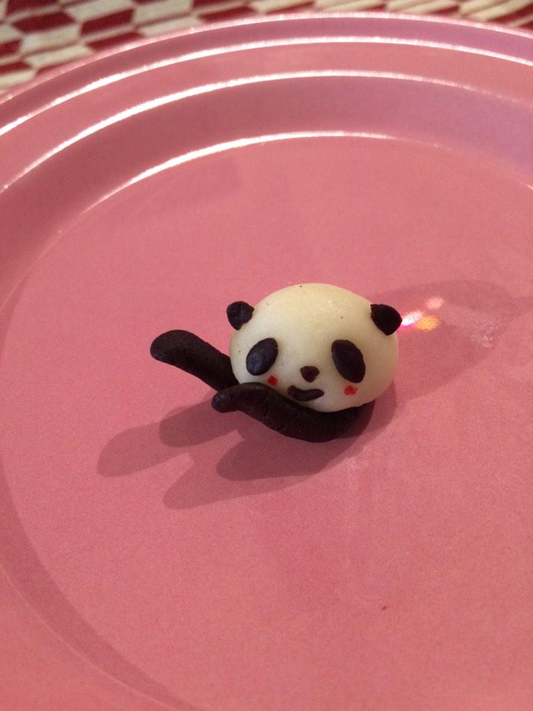 パフェに乗せるマジパンのパンダ。鼻がハートバージョン♪