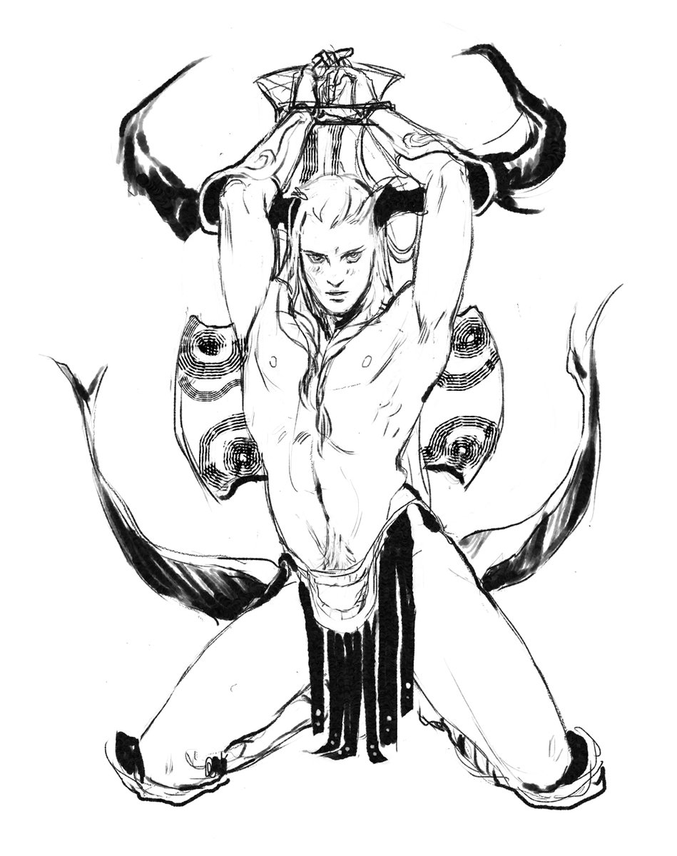 Here's the lineart I did for these Kingdom Death designs!💋 There was a little more chub showing in the original~ 😘 twitter.com/Bakatyler_/sta…