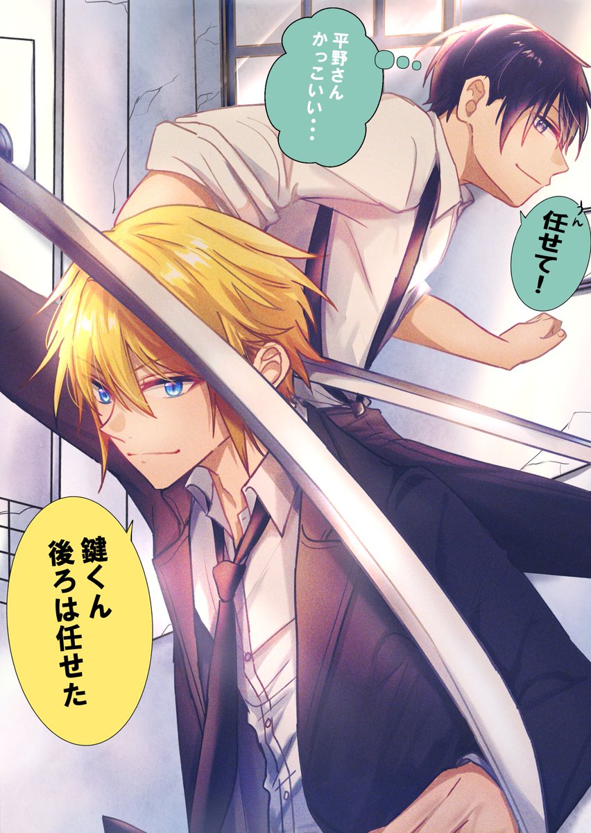某パロが忘れられないので続きで平野先輩と鍵くん⚔️2人の関係性はこんな感じかなぁ~と!☺️