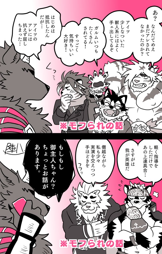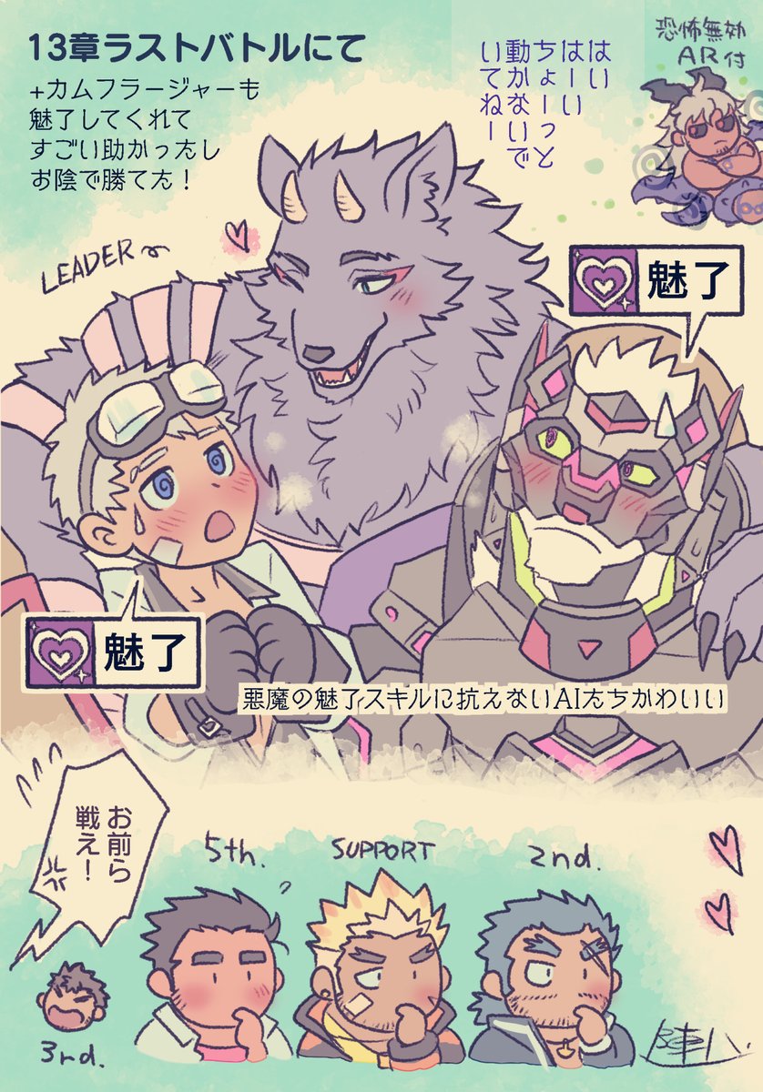追加おまけ。バーサーカーズのモフメン全員に手つけてた(語弊)主3くん。ちゃんと放サモの主人公してたらしい twitter.com/zinpatink_S/st…