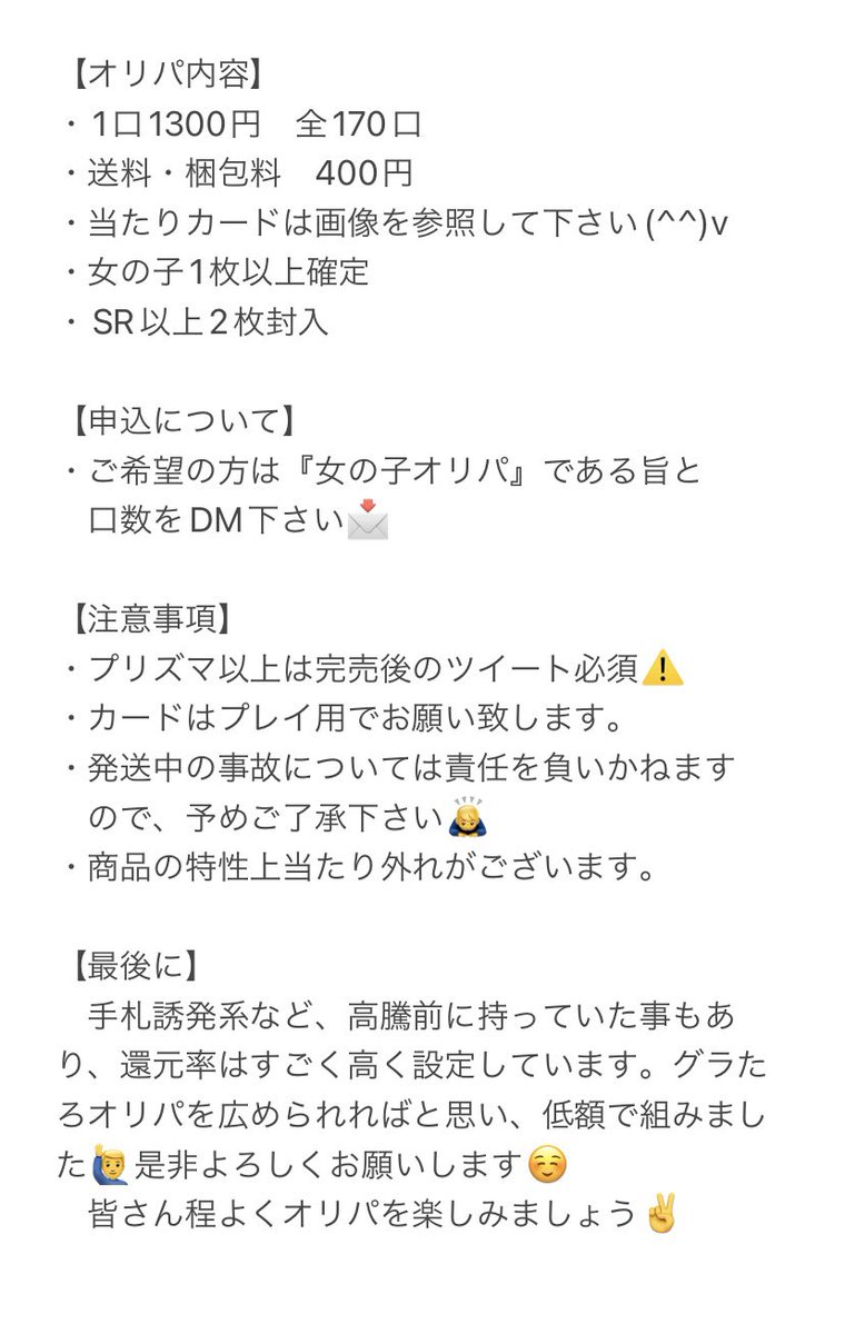 グラたろオリパを広めたいと思い、気合いの『女の子オリパ』組みました🙋♂️