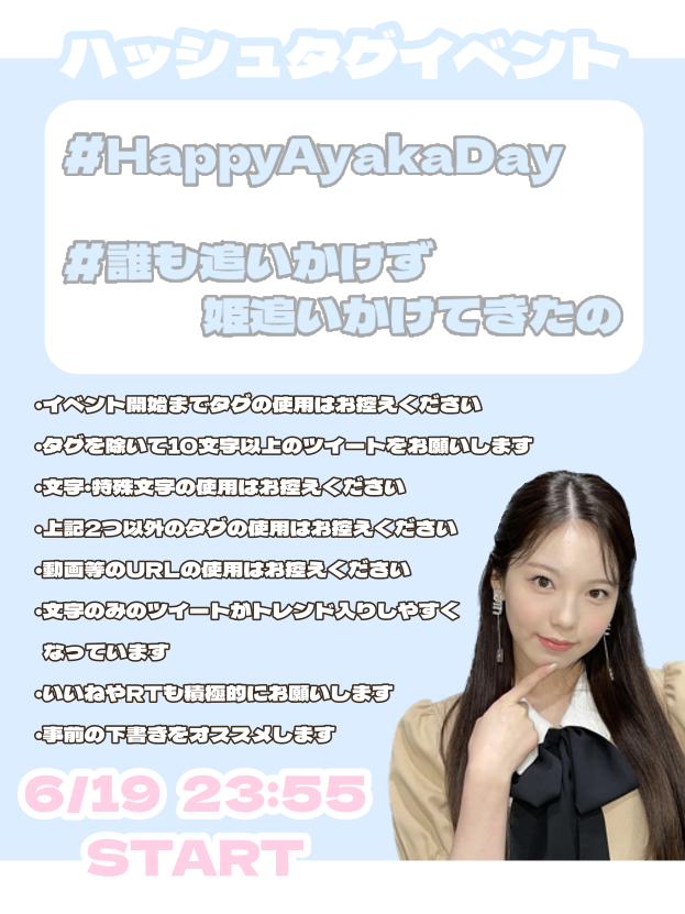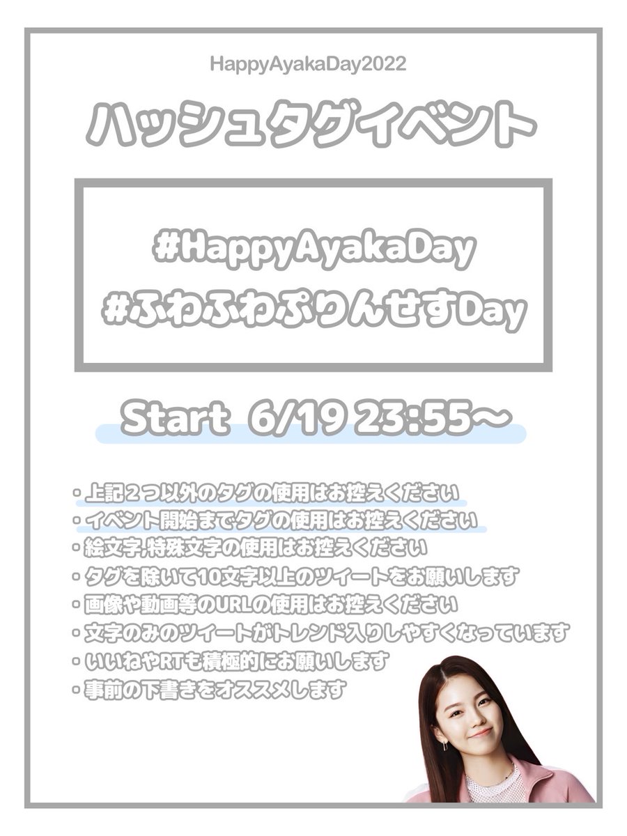 アヤカちゃんのお誕生日お祝いツイートを、こちらのタグを付けてツイートをお願いします✨🌈