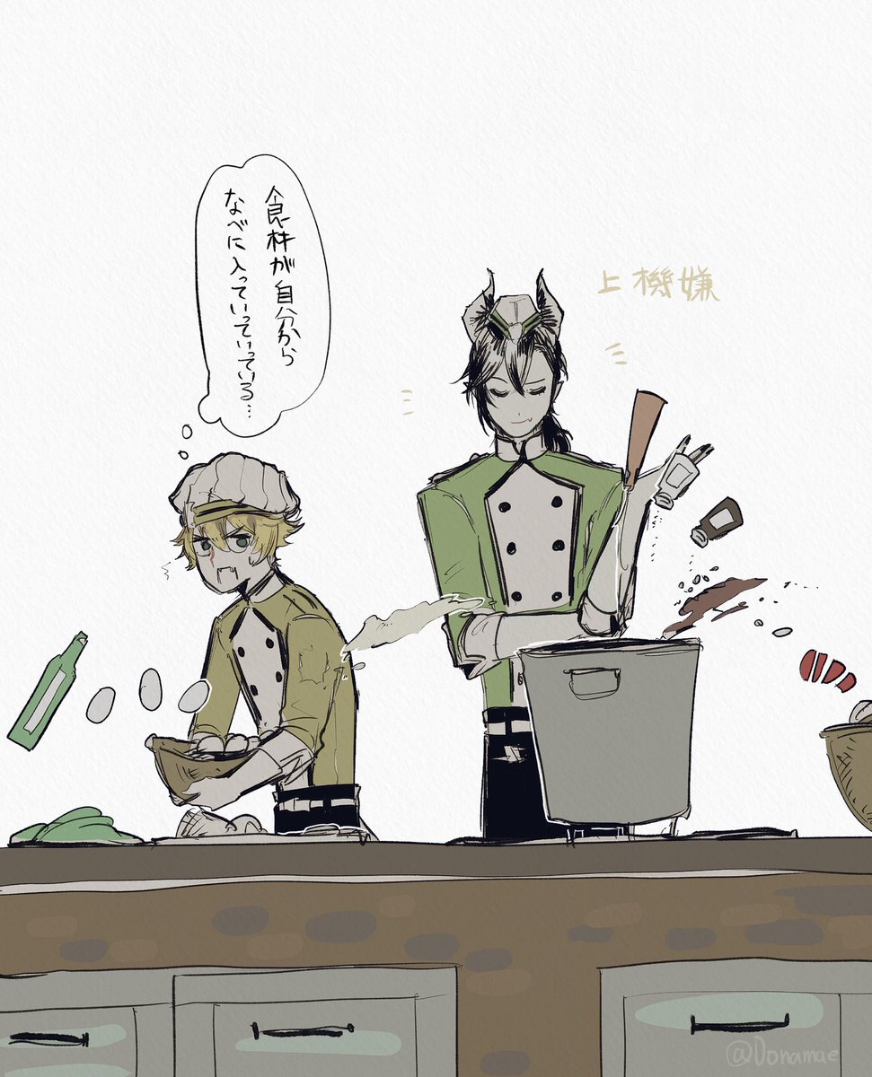マスターシェフ楽しみだなっていうマレウスとラギーの落書き
