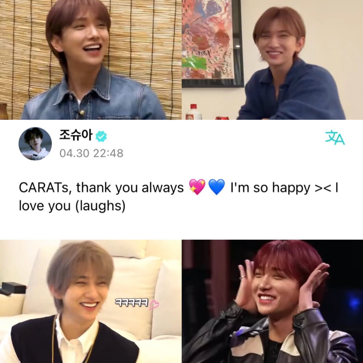 just realized this clip hits different now that joshua said "i feel happy when i see you, that's why i look at you alot" to seungkwan 💔
