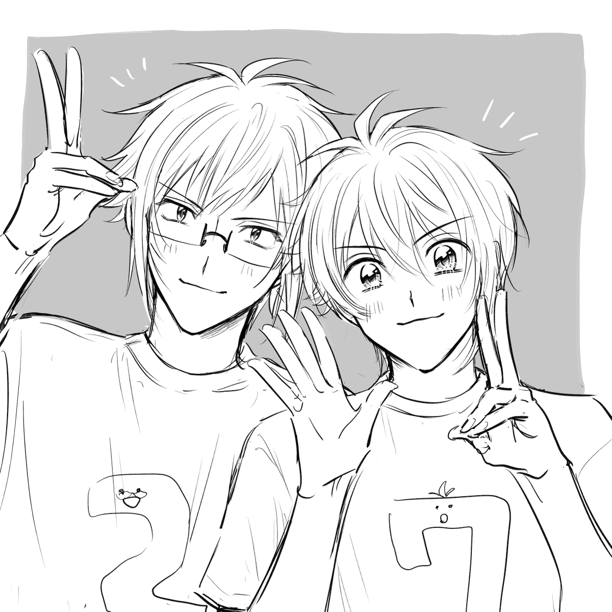 お友達の続禁煙さんと天陸描きました!(陸:禁煙さん、天:青天丼)松葉杖なのに描かせてすみませんでした 大納言あずき‼️‼️‼️