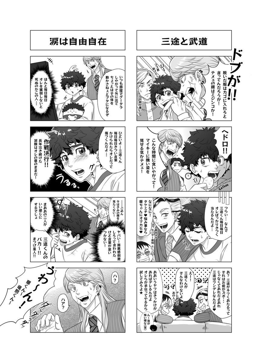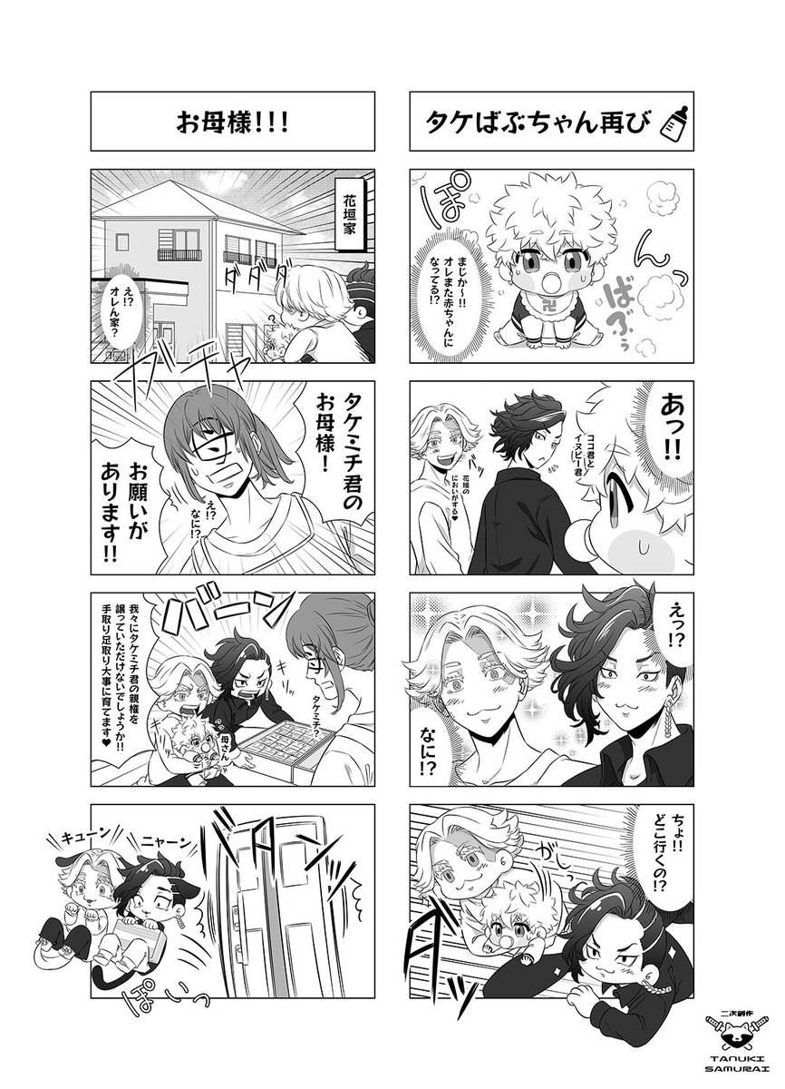 頑張って作成したのでTwitterにもアップ☺️✨ 🌸🎋Webオンリーの展示作品になります。 【妄想設定】 梵天メンバーとタケミチのゆるい日常4コマ漫画になります。 ※🌸🎋メインの🎋愛され風