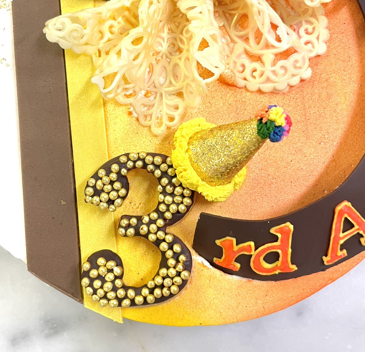)にお祝いのケーキを作成させていただきました☺️ 豪華な衣装のイメージをベースに、ショーのイメージで煌びやかに!よくみると帽子のポンポンにはメンバーカラーも✨