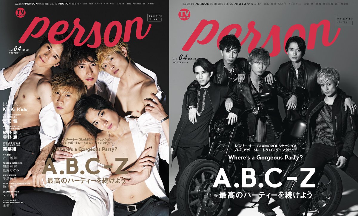 話題のアーティストの素顔に迫るマガジンに Vol.64の「PERSON」表紙を飾るのは A.B.C-Z の超セクシーな肉体美! 巻頭12ページも豪華!