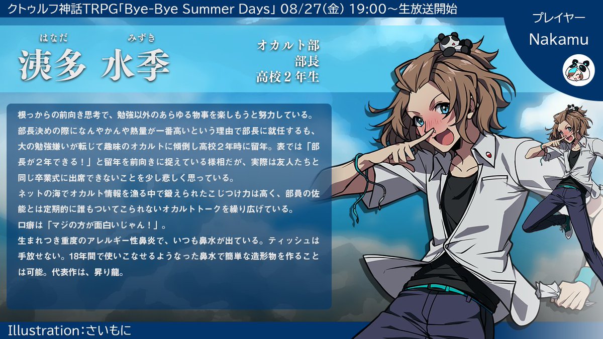 ワイテルズ×クトゥルフ神話TRPG「Bye-Bye Summer Days」主役たちを紹介します。