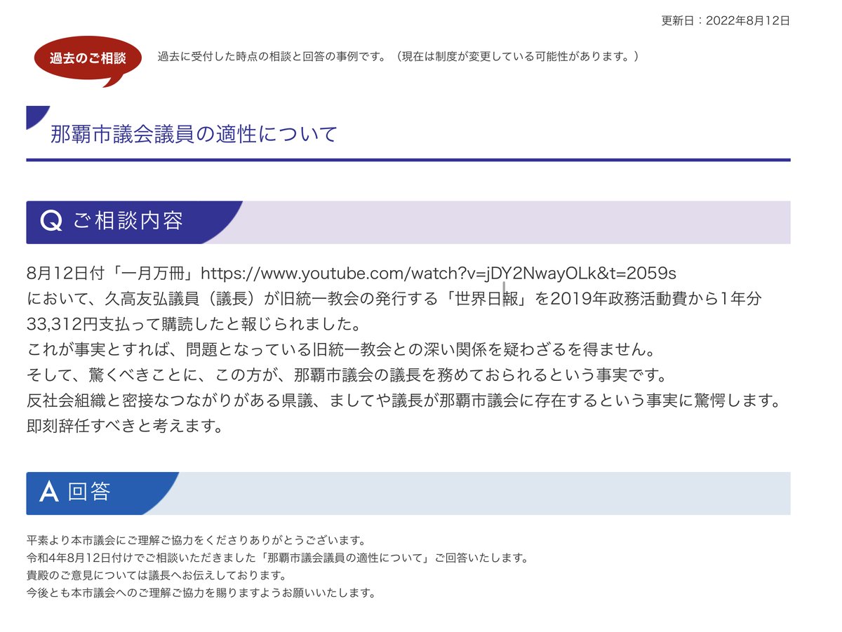 統一教会問題について触れると