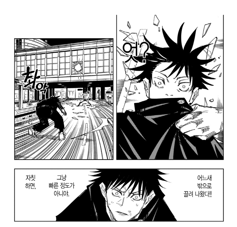 이때 나나미랑 나오비토도 있는데 토우지가 메구미랑 싸우려고 했다는 건 우리 메구미 1급 이상이라는 거잖아