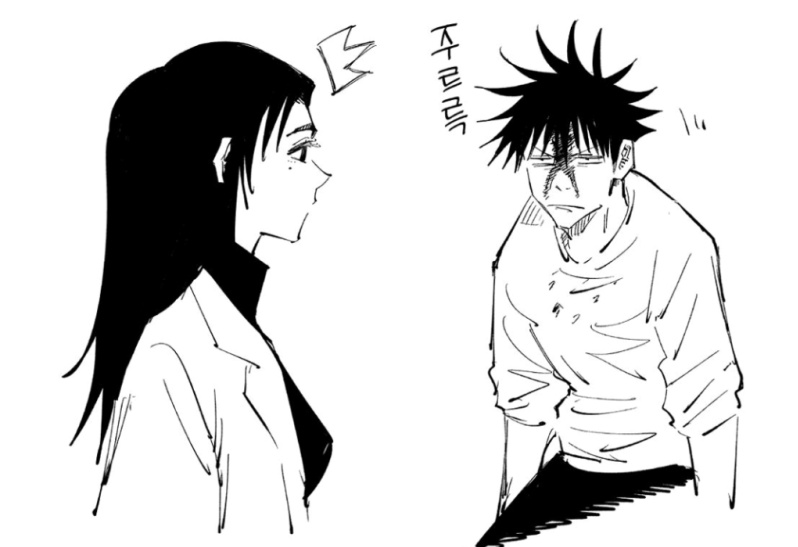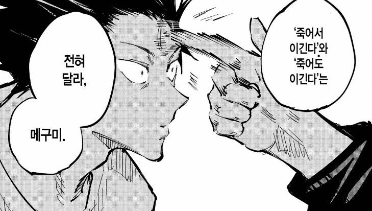 메구미 고죠한테 딱밤맞고 이마에서 피났음ㅋㅋㅋㅋ 심지어 딱밤 맞을 때 머리 휘날림 얼마나 세게 때린 거냐고