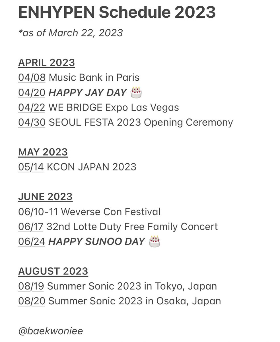 #ENHYPEN Schedule 2023 as of 03/22.