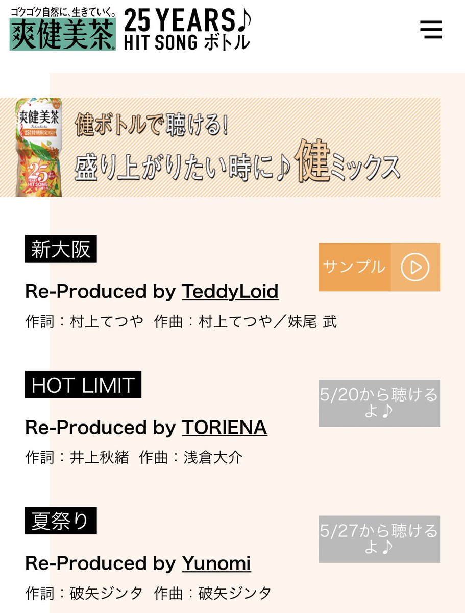 爽健美茶を飲んで、生まれ変わった平成の名曲を聴きましょう。この企画でYunomiは「夏祭り」のリアレンジを担当しました。公開は5/27から。 twitter.com/SokenbichaJapa…