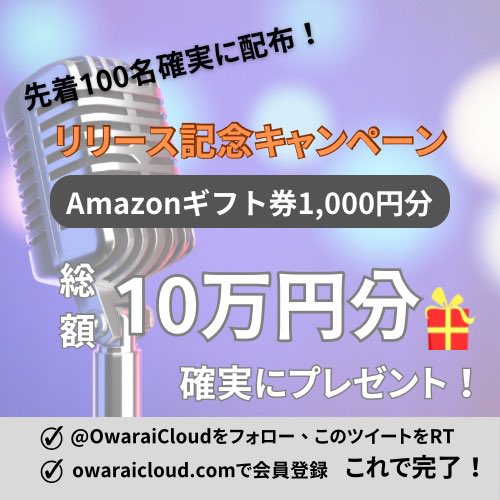 ①@OwaraiCloudをフォロー