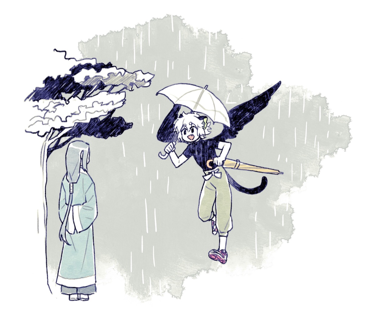 ろしゃお、人間vs自然の話と捉えてしまうとそりゃぽんぽこやもののけ姫の方が深堀りしてるので消化不良になる人がいるの分かるんですけど、実は人間vs自然の要素は薄くて、異なる立場の者同士の話なんですよね〜 人間に森を追われた妖精ではなく、自分が安心できる居場所を探す子供の話なんですよ…