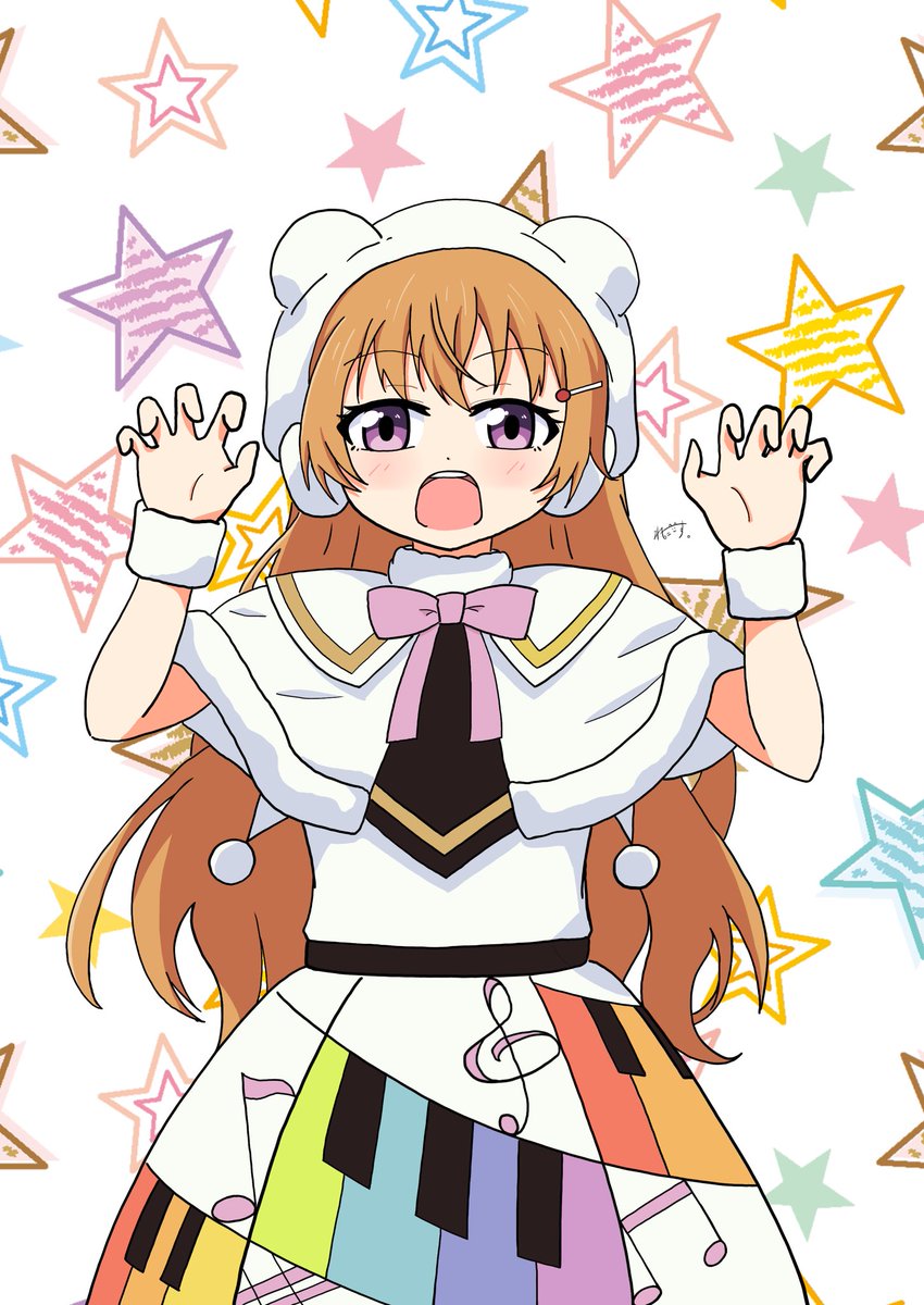 彼方ちゃん描きました! この「ガオー‼︎」ってしてるポーズめっちゃ好き😭🐏