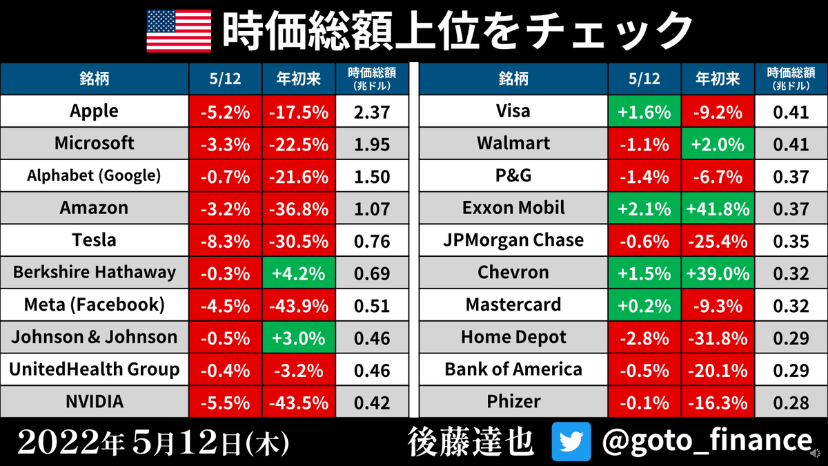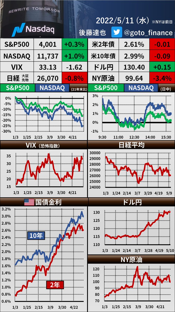 S&P500、ナスダックともに急落し、年初来安値となりました。いろんなグラフでこの1日を整理するとともに、投資環境を整理しています。