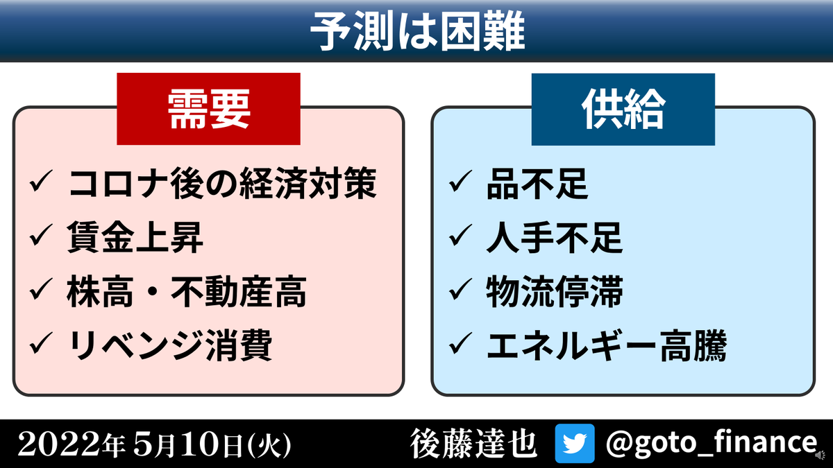 🇺🇸インフレが株式市場やFRBの金融政策、さらには世界景気にも大きな影響を及ぼしています。「どういう状況?」「なぜ?」「今後どうなる?」。素朴な疑問にYouTubeでこたえます。論点が多いので3回シリーズです。下に主な画像も貼っておきます