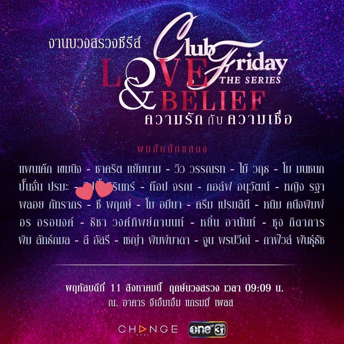 ฝากคอนเสิร์ตครั้งแรกของผมด้วยนะครับ รายละเอียดใกล้จะปล่อยแล้ว ใกล้จะกดบัตรแล้ว กับวันที่ 11 นี้มีบวงสรวงซีรี่ย์เรื่องใหม่ คลับฟรายเดย์ ไปหาพี่ซีกันเยอะๆนะคะ