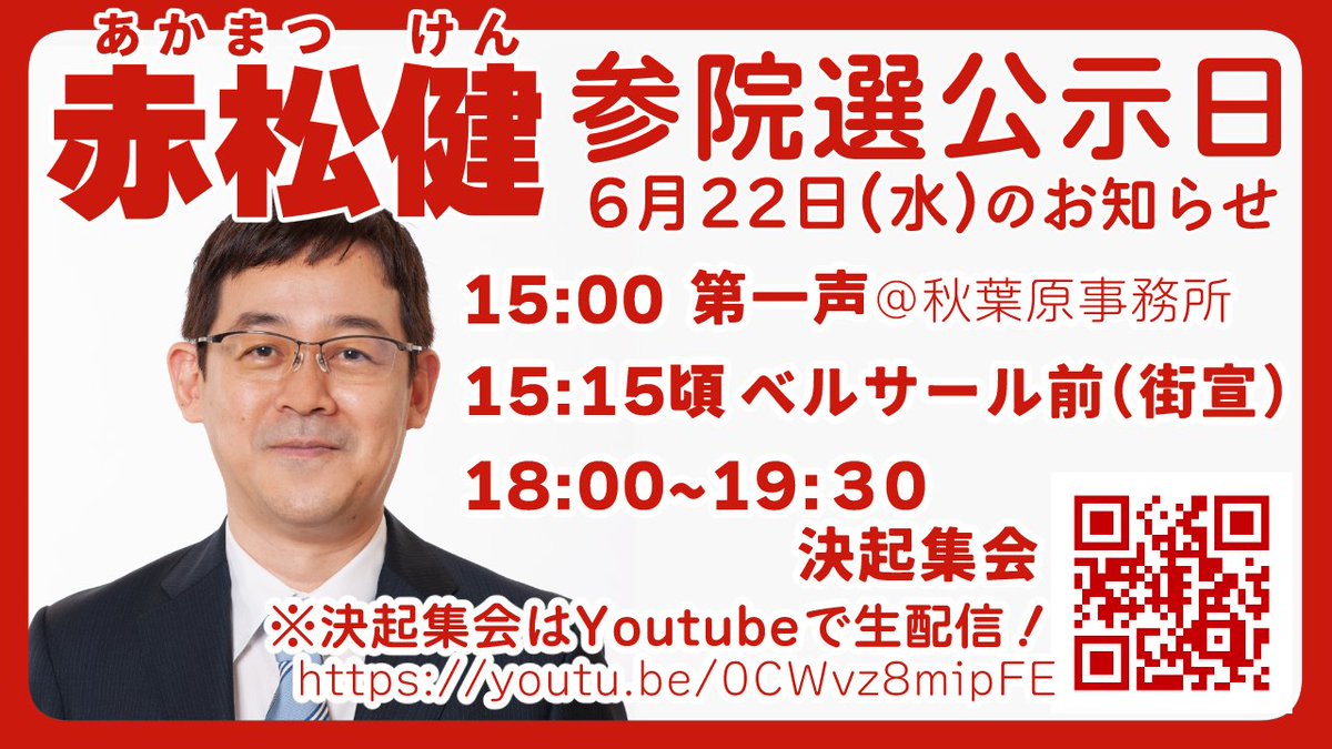 6/22(水)第一声と街宣📢 twitter.com/kenakamatsu_st…
