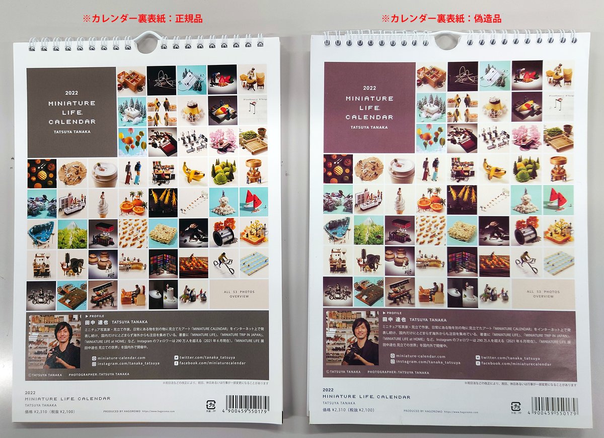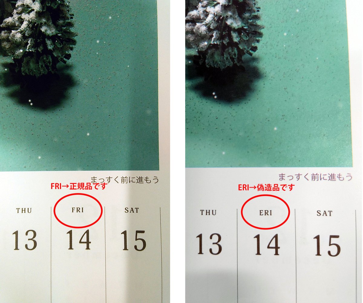 2022年カレンダーの偽造品が出回っていることが発覚しました。