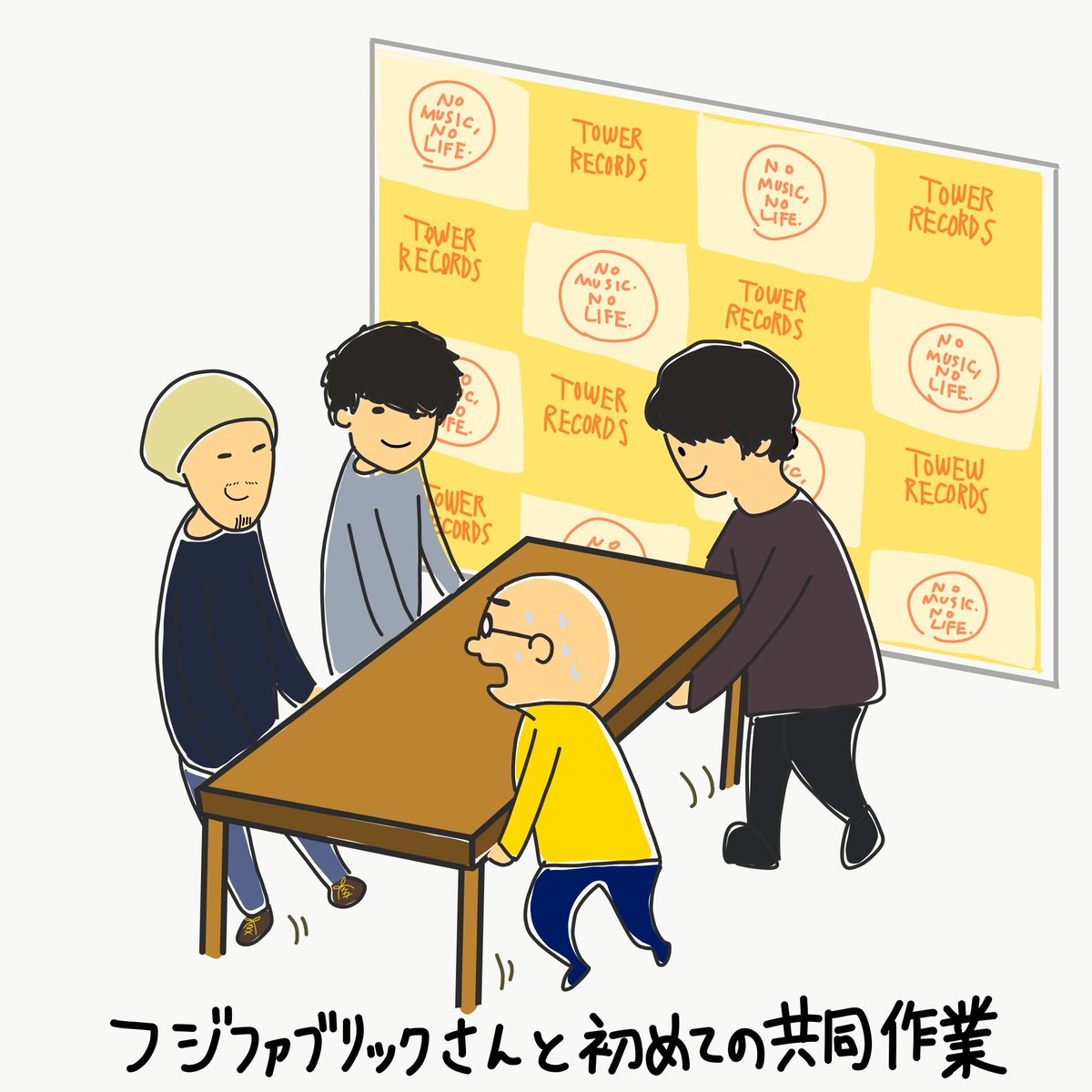 フジファブリックさんのアルバム「F」リリースイベントに出演。お写真をお願いしたら「この看板前で撮ろう」となり、メンバーの皆様が看板前にあったテーブルを一緒にどけてくださいました。感動