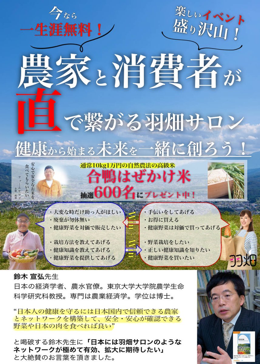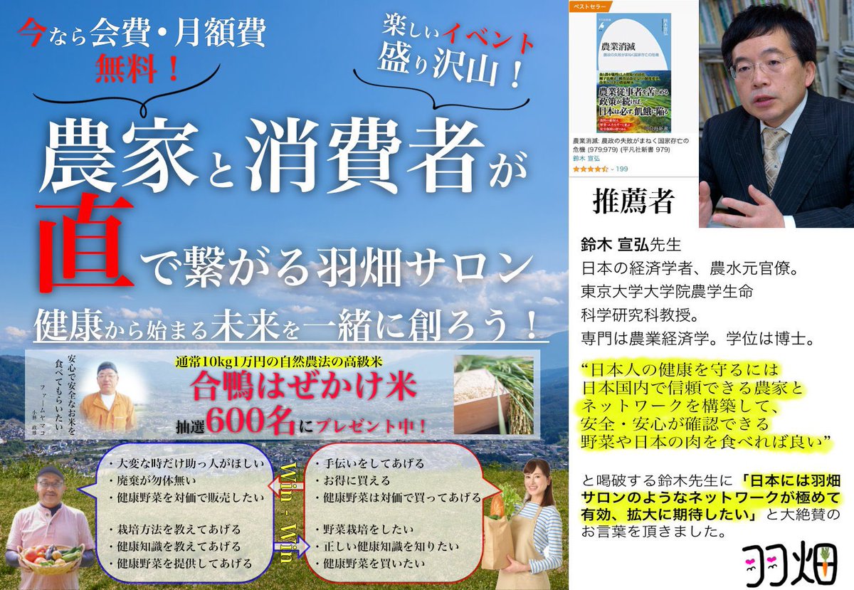 農家と消費者が直接繋がる羽畑サロンは、3月1日からの入会は月額制となることが決定しました。