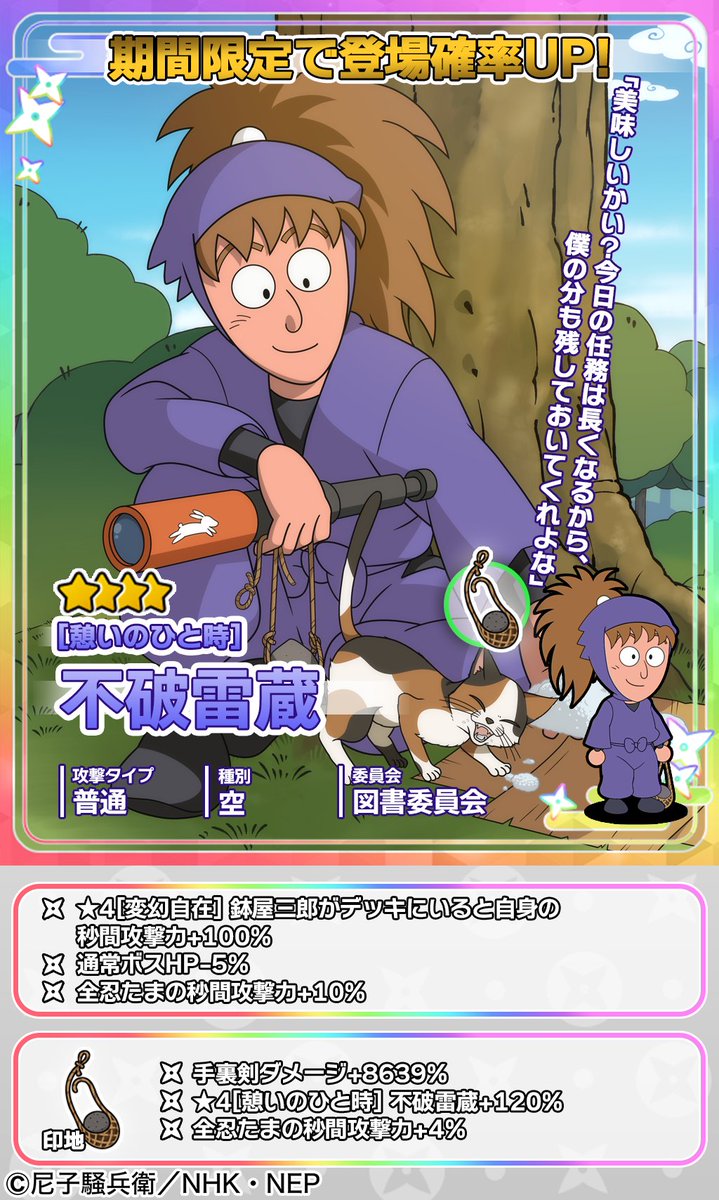 ★4忍たま「不破雷蔵」と★4忍具「印地」がムゲンのツボガチャに登場!🥷