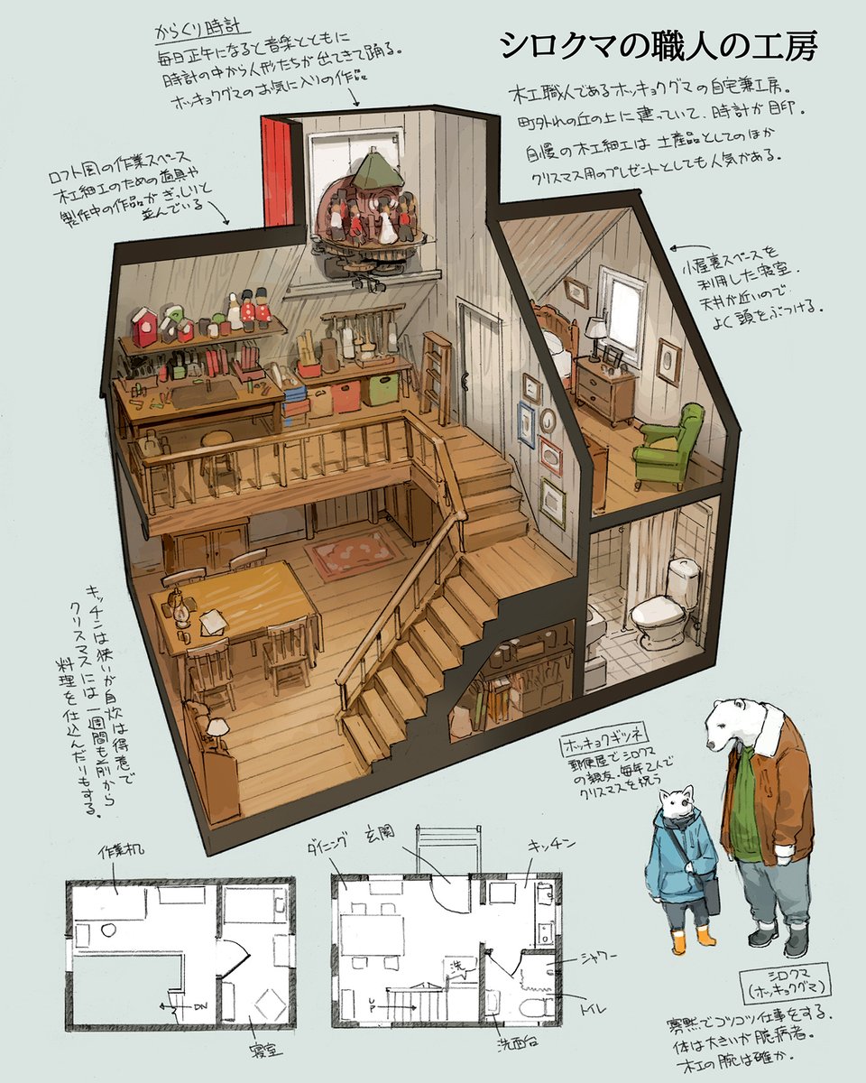 『建築知識 2021年12月号』今月号は洋風住宅の用語特集でした。僕の表紙イラストは今回で最後。1年間お付き合いいただきありがとうございました! ※設定画はSNS用の描き下ろしです