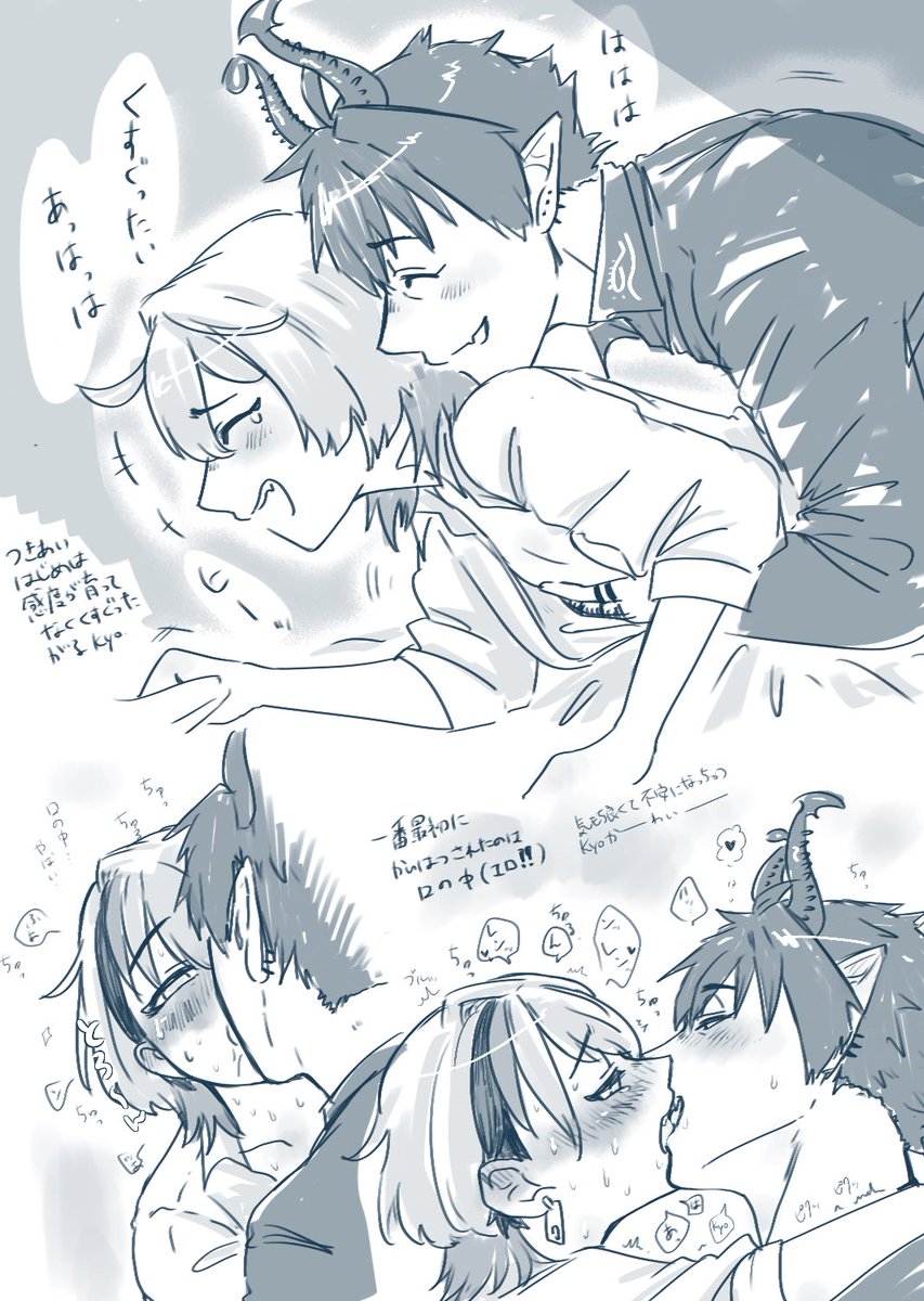 寝る前の落書きだけどしっぽの付け根とんとんされてヘロヘロになっちゃう😾ョ見たかった ちっちゃいおしりかわいいね〜〜 #Renkyotto