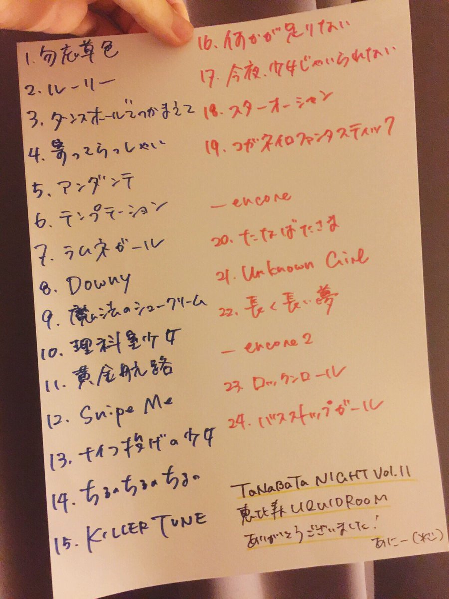 昨日のセットリストです