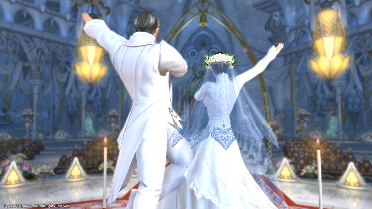 [ご報告]まさか…自分が…!?と思いましたがFF14を通じて知り合った方と先月末に入籍致しました。そしてひっそりとエタバンも執り行って来ました。4枚目のシーンで爆笑しましたわ…