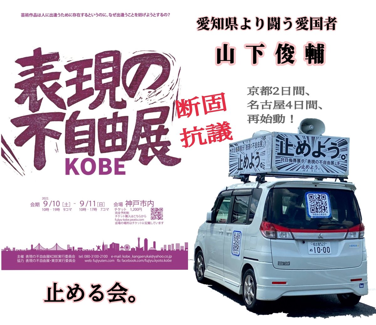 本日より、山下俊輔さんら「止める会」が神戸市へ抗議活動に。皆さま、ご声援のほど宜しくお願いします😊@tomerukai