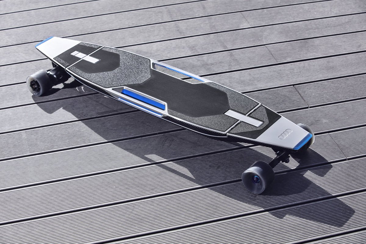 混雑しがちな都市の交通状況に柔軟に対応できる未来のモビリティコンセプト《#Audi Nexus》。スリムなボディと4つのタイヤを持ち、車体を傾ける事でカーブを曲がります。バイクのような高い機動性と自動車のような安定性を併せ持ち、新しい運転の楽しみを生み出すのです。