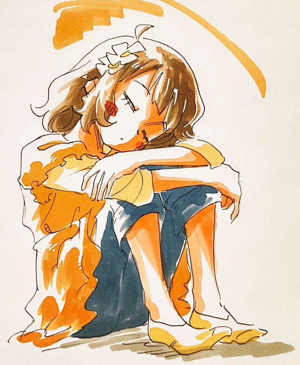 膝を抱えて寝る桃子ちゃんセンパイ。