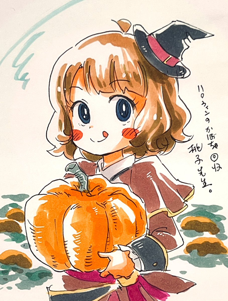 ハロウィンの準備でかぼちゃを回収桃子先生。🎃
