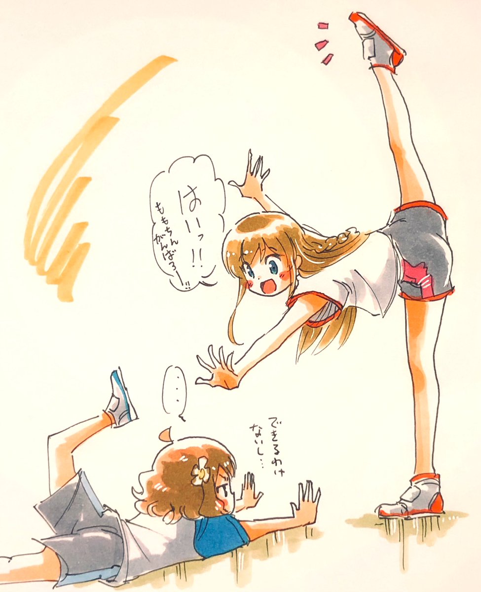 新体操ごっこセンパイ。とうみみん。 「ももちんも一緒にやろうよ!」って誘われた的な。