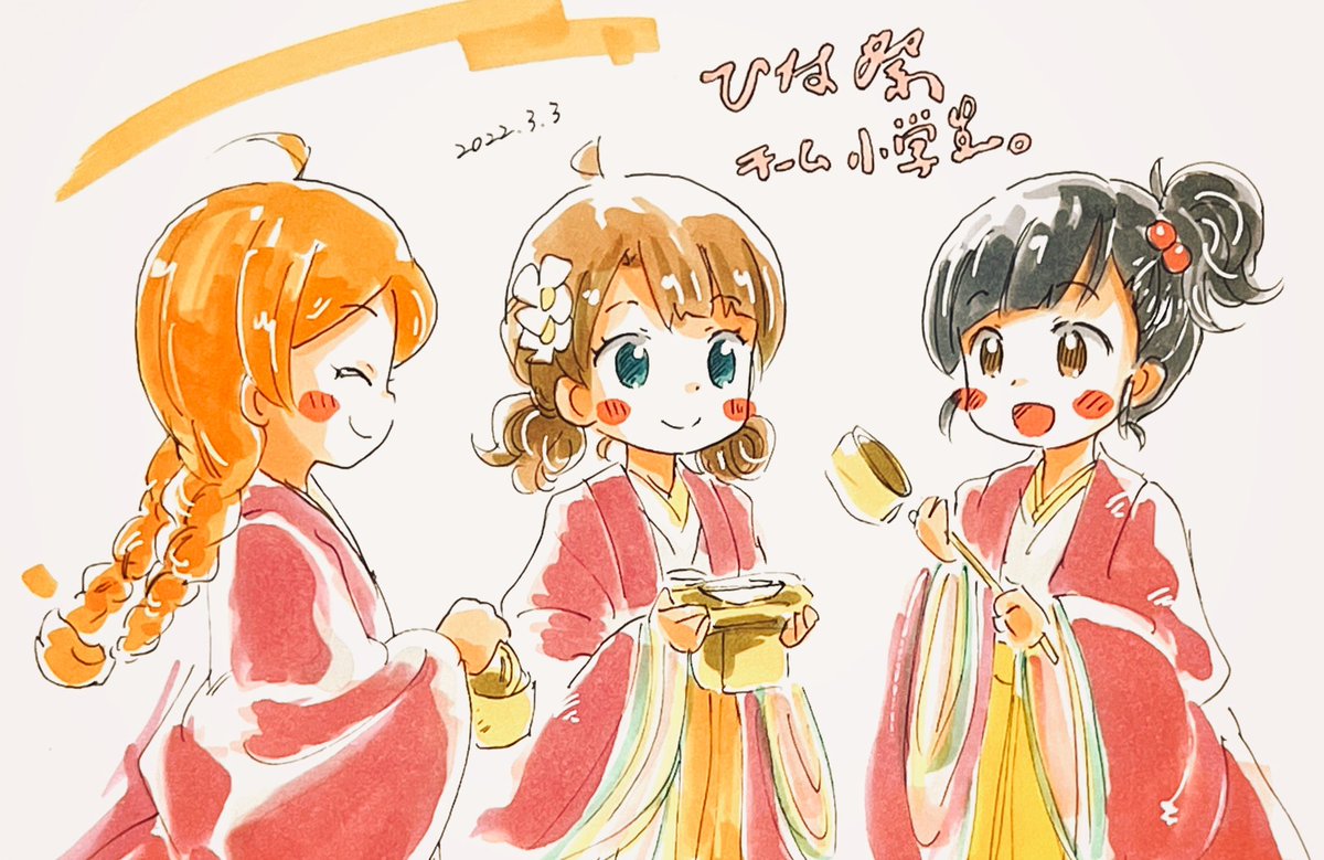 ひな祭りチーム小学生。 三人組官女で。