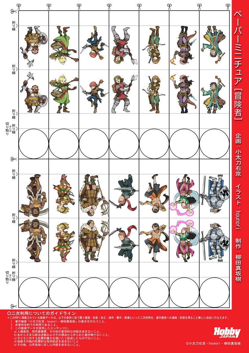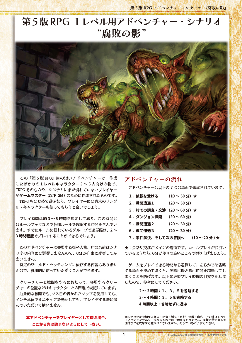 HOBBYJAPAN TRPGでは、TRPGで便利に使用していただける冒険者やモンスターのペーパー・ミニチュアや、第5版ファンタジーRPG対応の初心者向けシナリオ『腐敗の影』などのPDFファイルを無料で公開しております