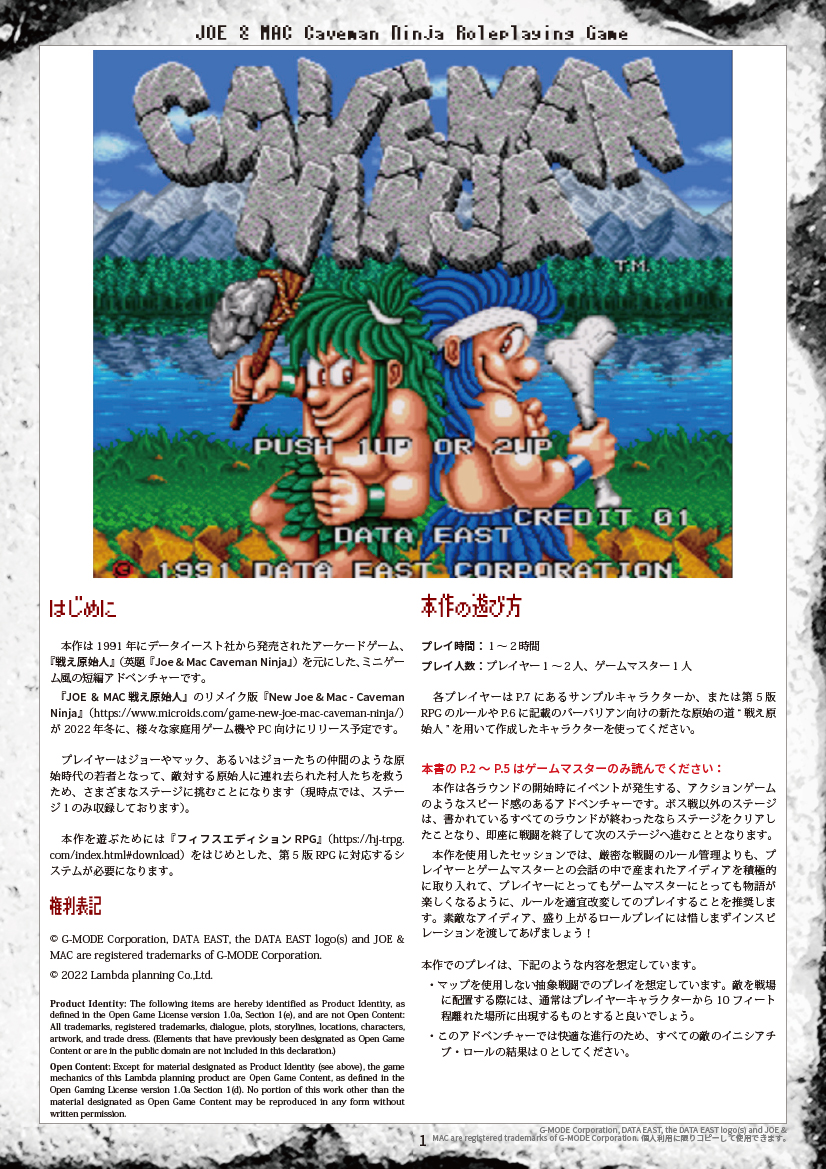 弊社TRPGサイトにて、ミニアドベンチャー+追加データ『戦え原始人 JOE&MAC for TRPG』を公開いたしました