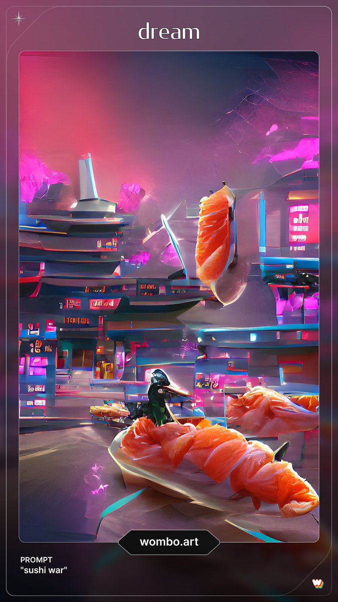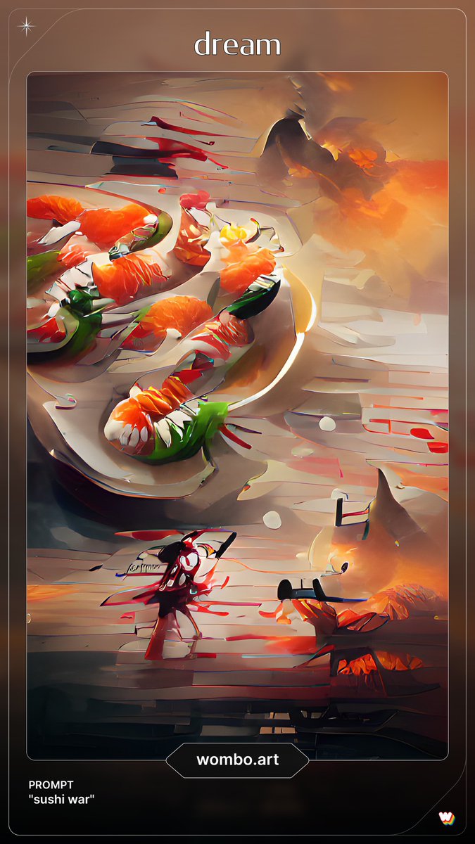 「sushi war」も入力してみたが、画風によって寿司の戦い方が変わっててワロタ(寿司が軍艦になってたり、未来の乗り物になってたり格闘技のスタンド風だったり……) #womboart
