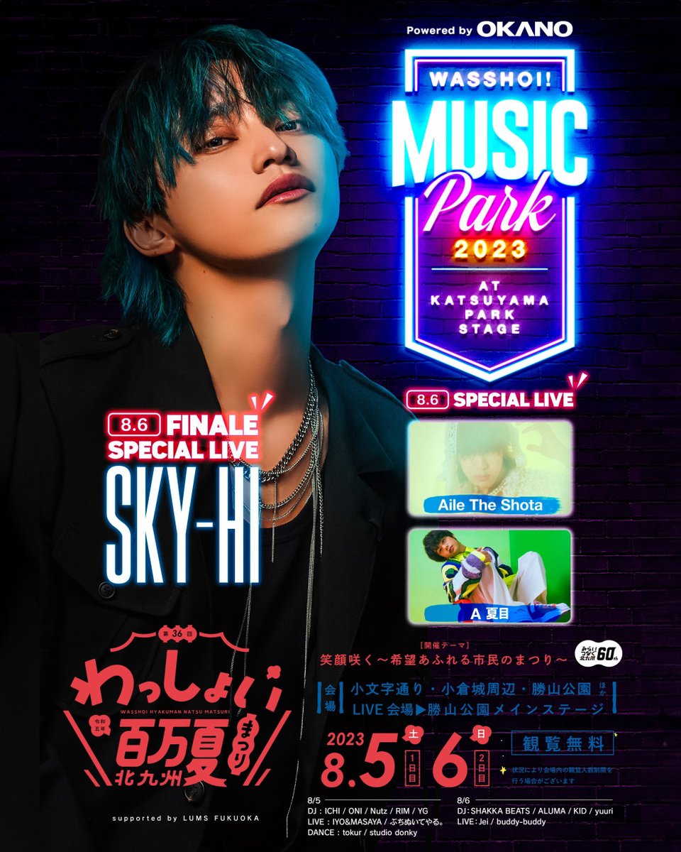 北九州市危機管理室からの情報によると8/6(日)末明頃から風速12mの風が吹き、その状態が7日18時頃まで続く予報が出ています。テント等の設営物の飛散が考えられるため、8/6(日)のプログラムは全面中止させていただきます。