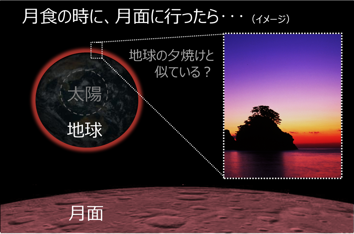 赤く見える理由は、地球の“夕焼け”を浴びているから? 月面に立って考えてみよう。