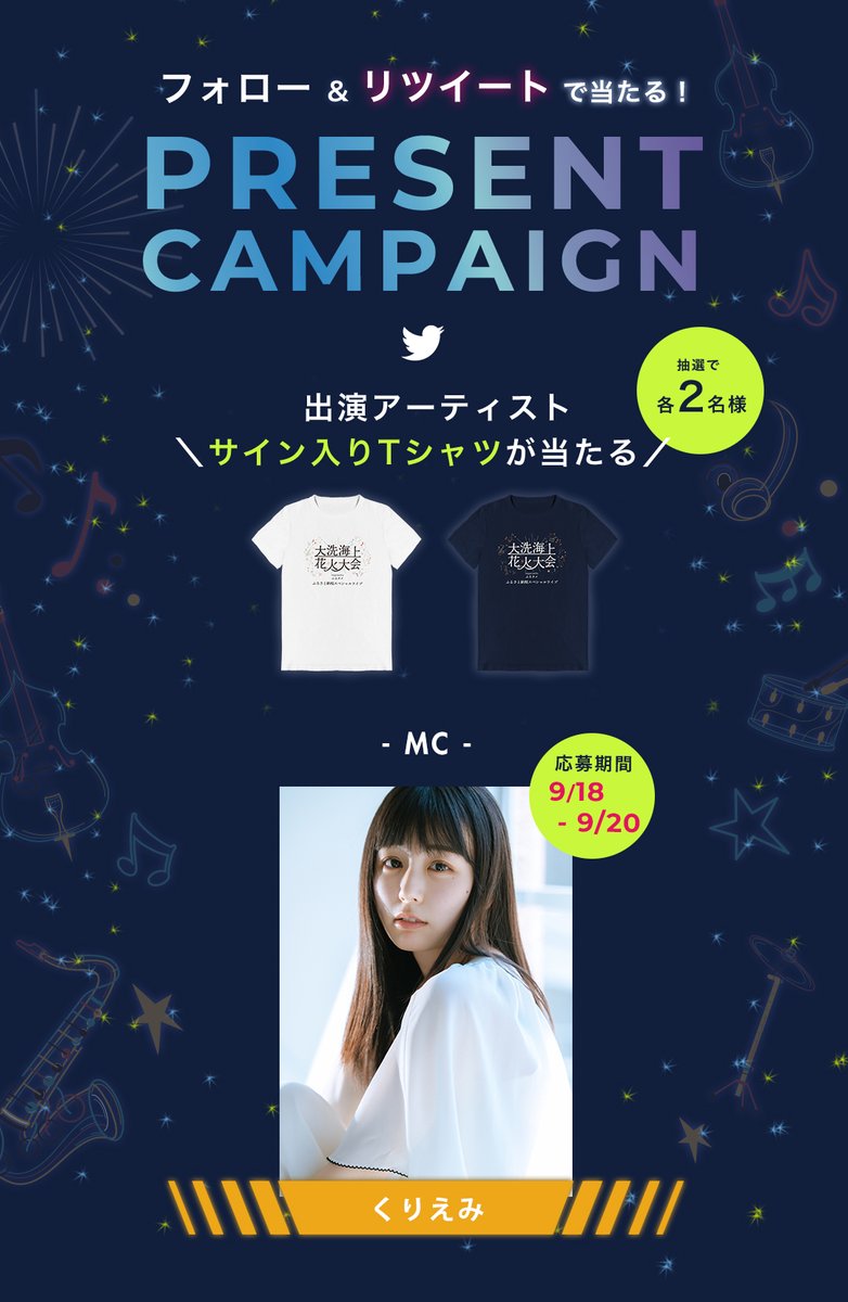 各2名様に「くりえみ 」@kurita__emiサイン入りT-シャツが当たる🎆✨