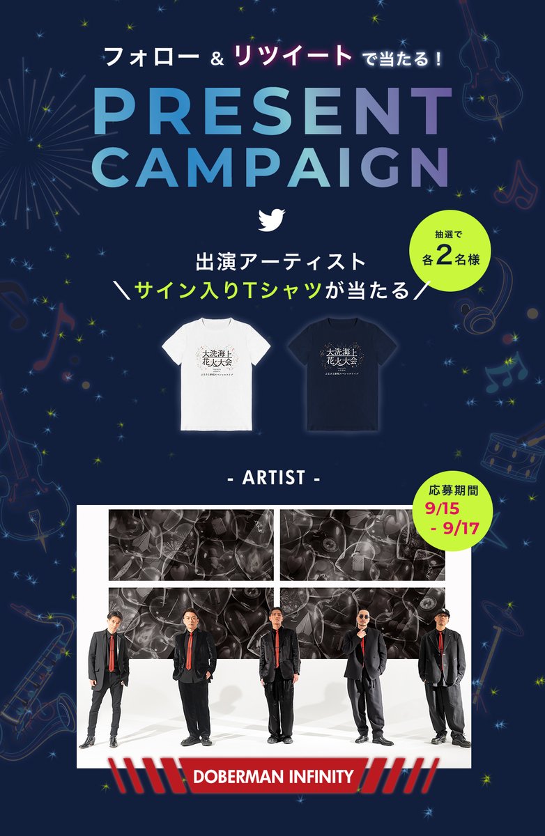 各2名様に「DOBERMAN INFINITY 」@DOBER_OFFICIALサイン入りT-シャツが当たる🎆✨