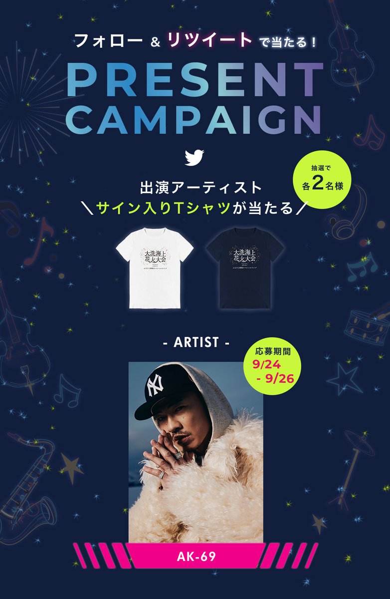 各2名様に「AK-69 」@ak69_official サイン入りT-シャツが当たる🎆✨