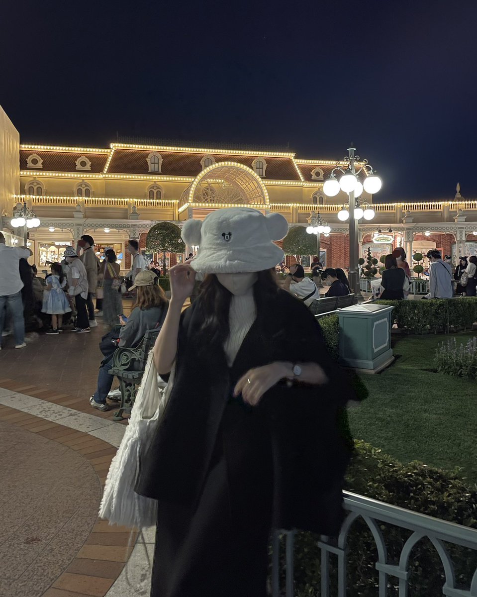 ディズニーハロウィンは白黒でまとめて⚪️ガウンが映えて可愛かった〜〜帽子とカチューシャ両方付けられて満足です